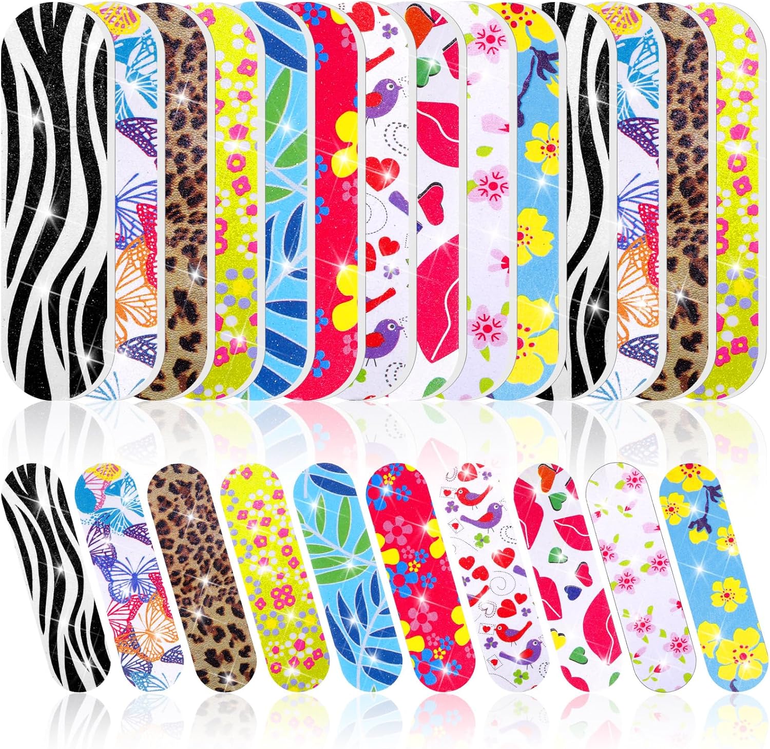 100 Pack Nail Files Double Sided Emery Boards Manicure Tools (Vibrant Style)