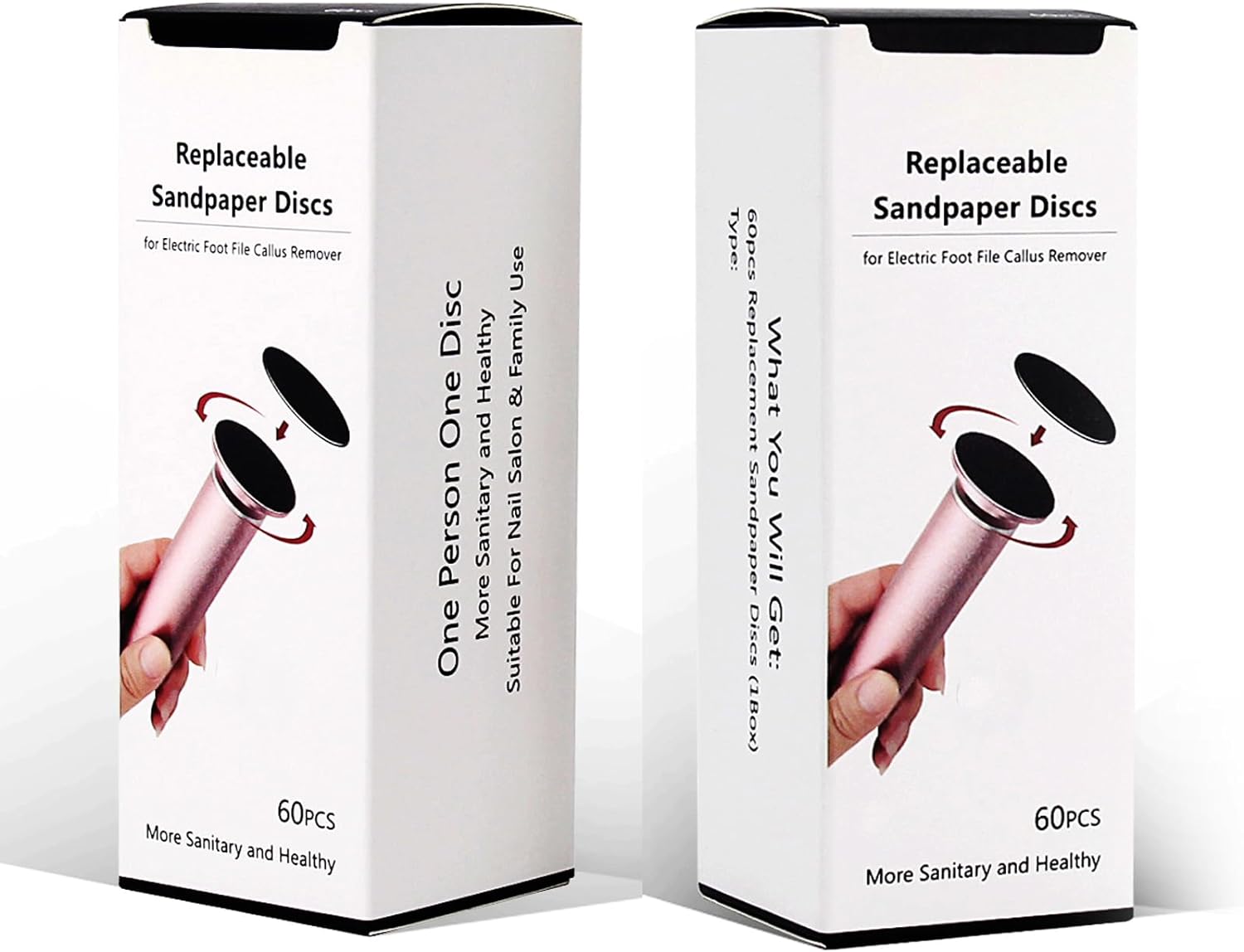 Package includes: 60PCS replacement sandpaper discs (Rough 80 Grit) , 60PCS replacement sandpaper discs (Super Smooth 180 Grit).